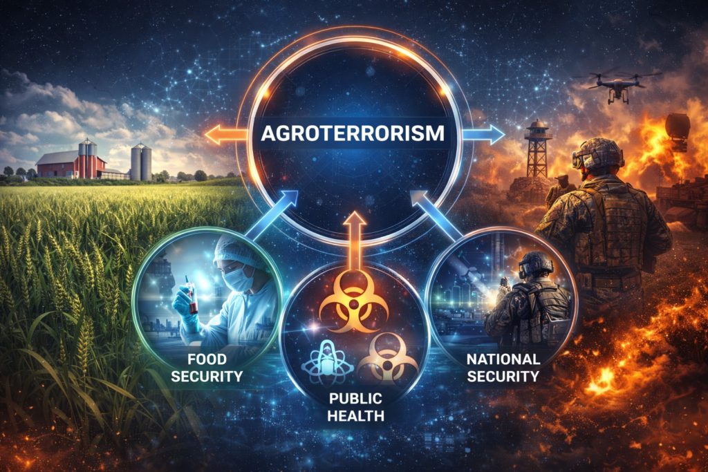 Agroterrorism sits at the intersection of food security, public health and national security: deliberate disruption of agriculture, livestock, water or supply chains can escalate rapidly into population-level impacts, economic instability and loss of trust in institutions. In a One Health context—where human health, animal health and the environment are tightly coupled—agroterrorism is not only an agricultural issu.